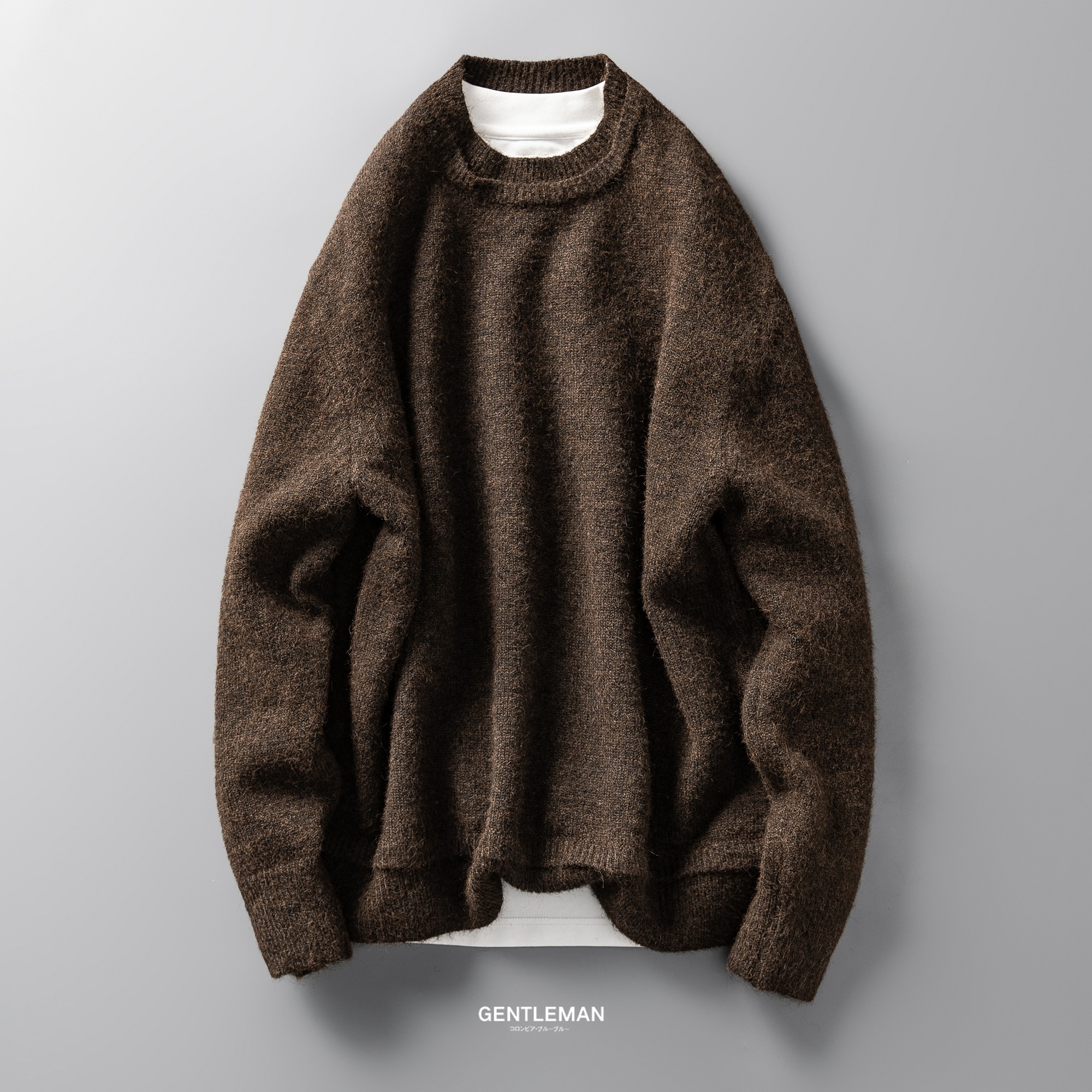 兔先森春秋圆领原宿风毛衣男潮牌渐变慵懒套头宽松保暖外穿针织衫