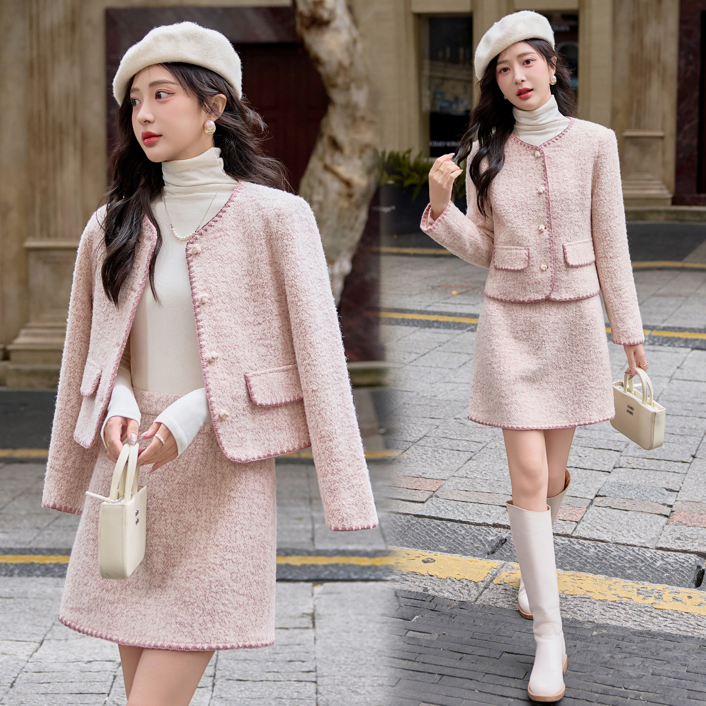 小香风时尚毛呢套装裙女秋冬新款高级感加厚呢子外套半身裙两件套