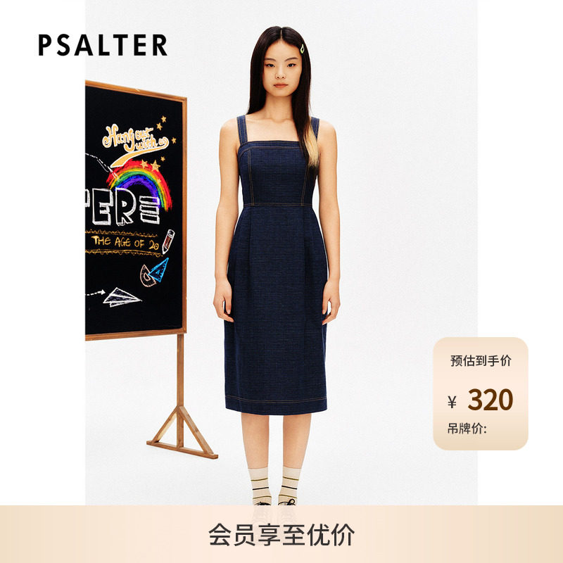 THESOONG/巴黎背带裙 100%纯棉透气舒适线条感女士牛仔吊带裙7630