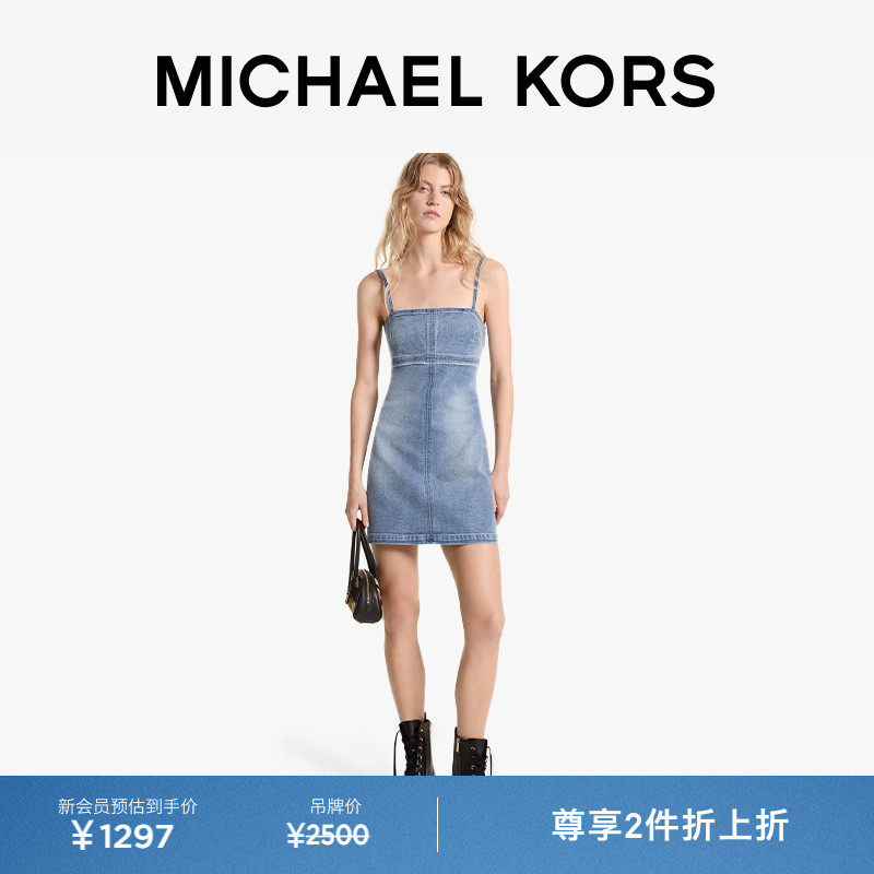 【两件折上折】MICHAEL KORS MK 女士弹力丹宁牛仔吊带裙