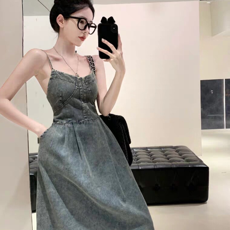 甜甜轻奢牛仔吊带裙女内搭高级感气质收腰a字长裙子连衣裙H396