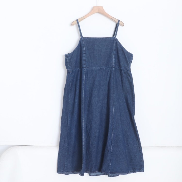 D09001日单客供料双肩带松紧宽松女气质水洗纯棉牛仔吊带裙大码