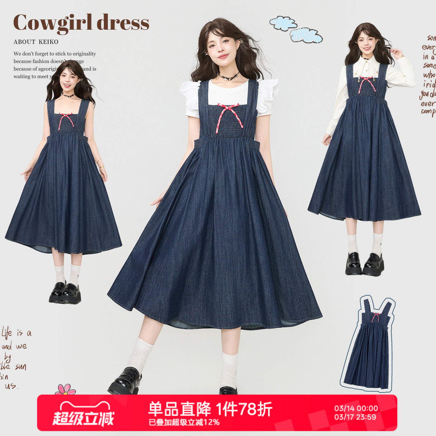 niko and ...NKJ连衣裙女2026春季新款宽松两穿牛仔吊带裙631418