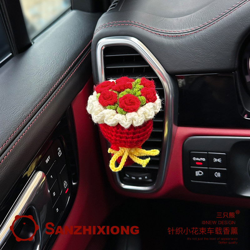针织花束车载香薰玫瑰汽车空调出风口香水夹车内装饰用品成品礼物