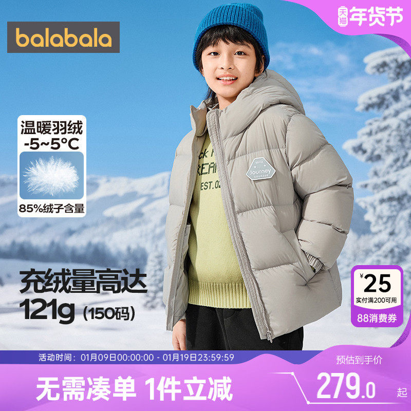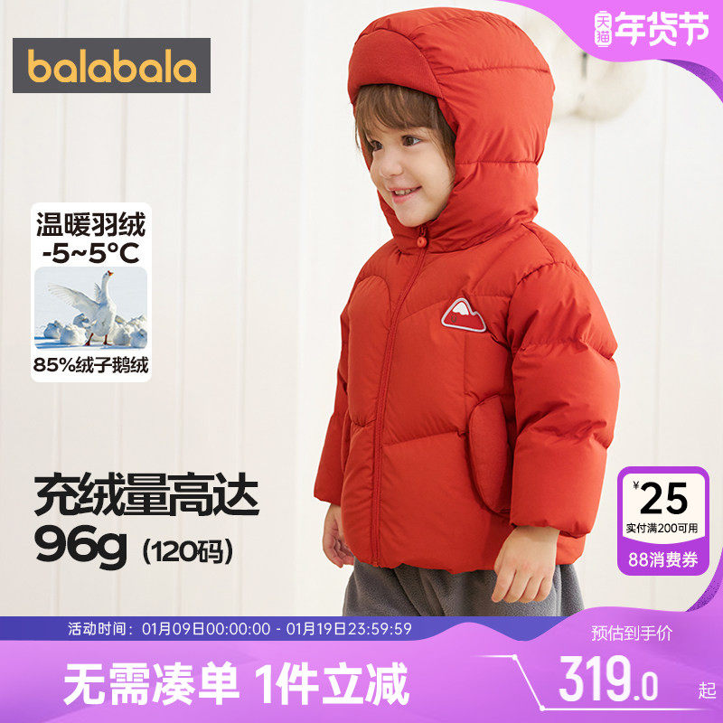 巴拉巴拉童装儿童羽绒服男童女童冬连帽外套保暖加厚宝宝三防2025