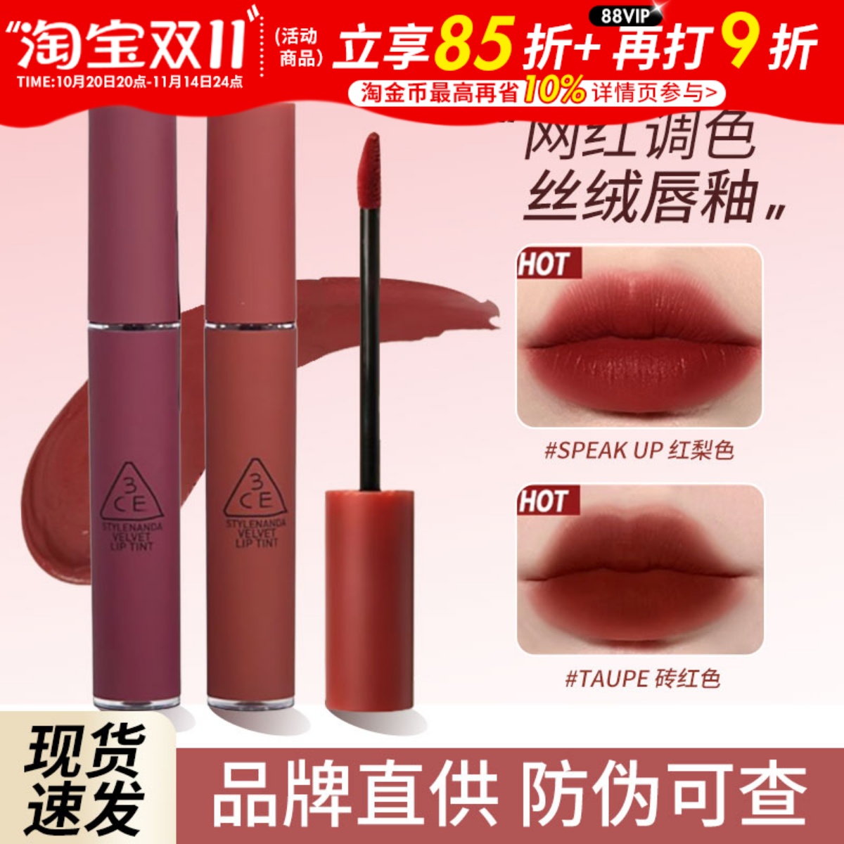 3ce唇釉砖红色taupe口红雾面哑光丝绒水润显白不易脱色正品韩国女