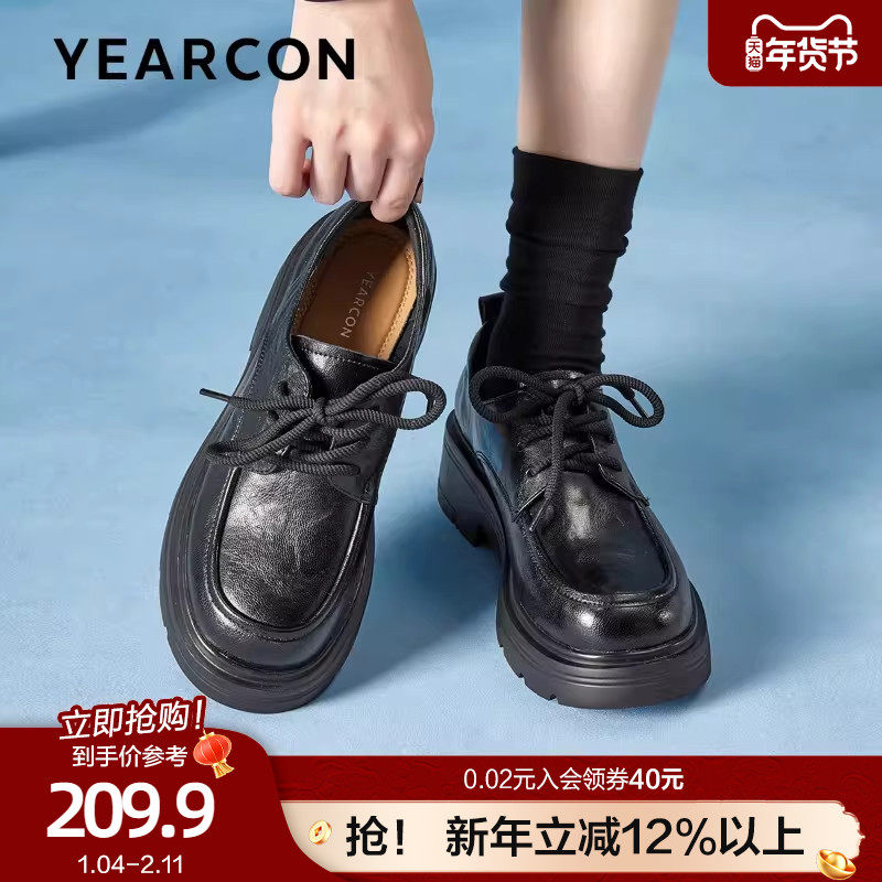 意尔康厚底系带乐福鞋女2025新款春秋复古学院风深口小皮鞋jk单鞋