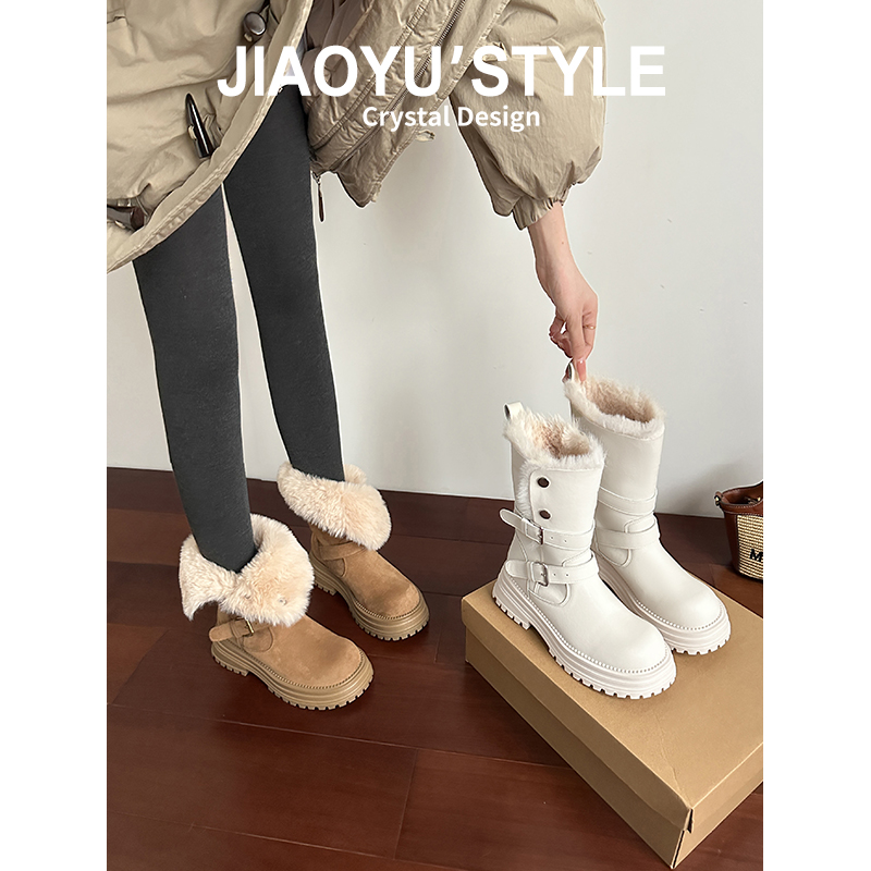 爆款厚底马丁靴女2025冬季新款棉鞋增高加绒保暖翻毛皮羊毛雪地靴