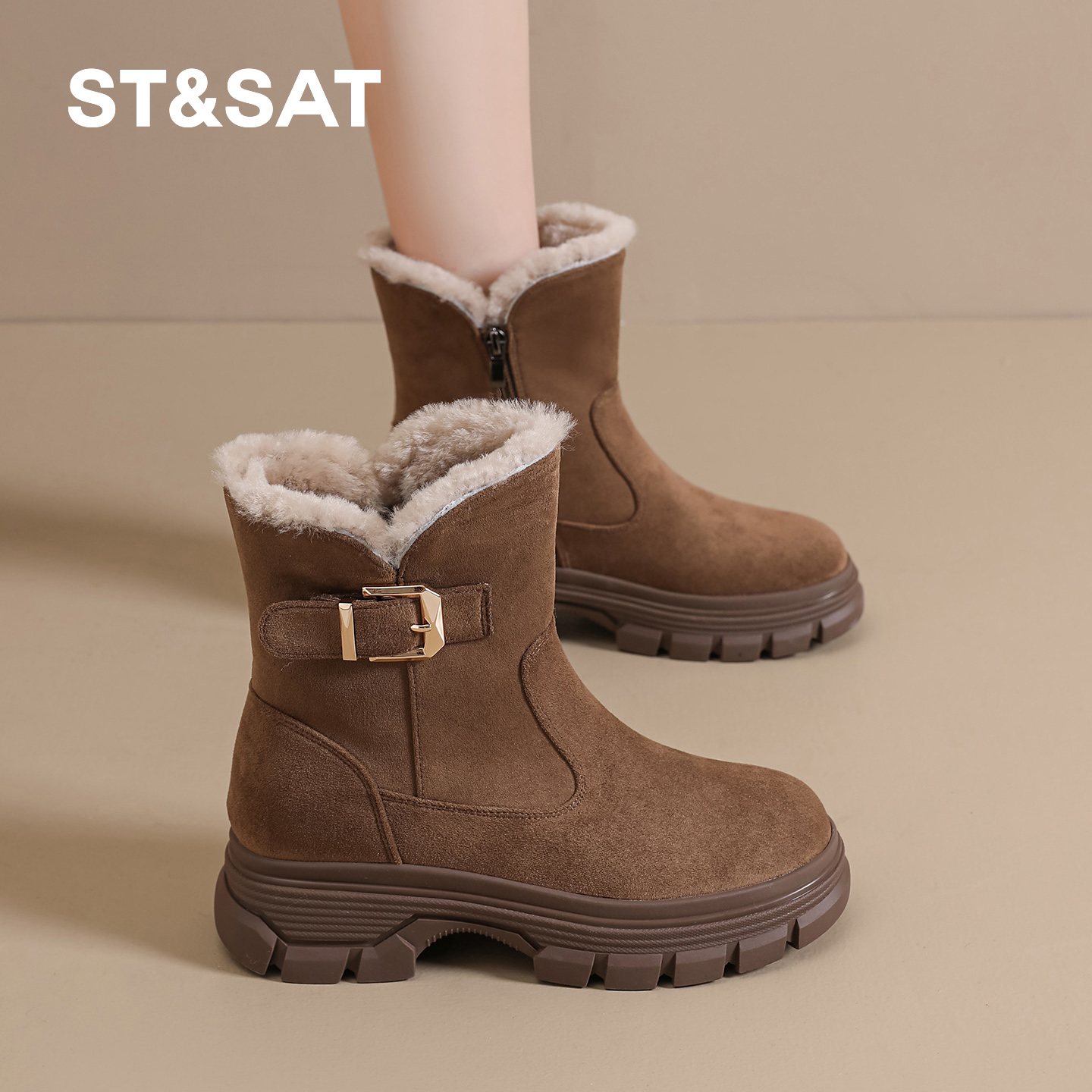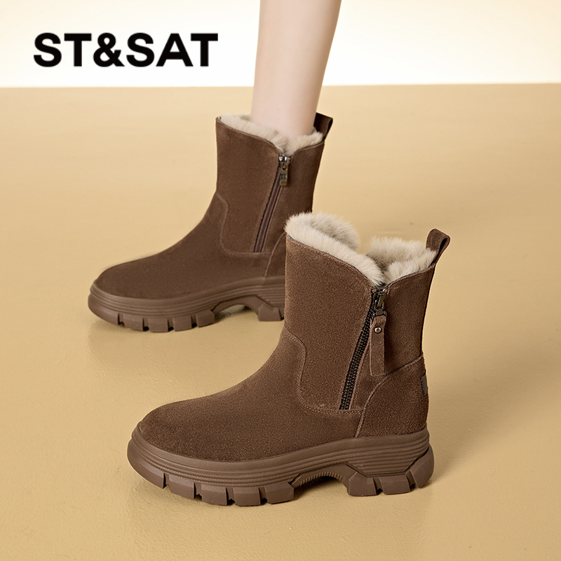 星期六女鞋冬季新款保暖拉链雪地靴女马丁靴休闲加厚保暖防滑棉靴