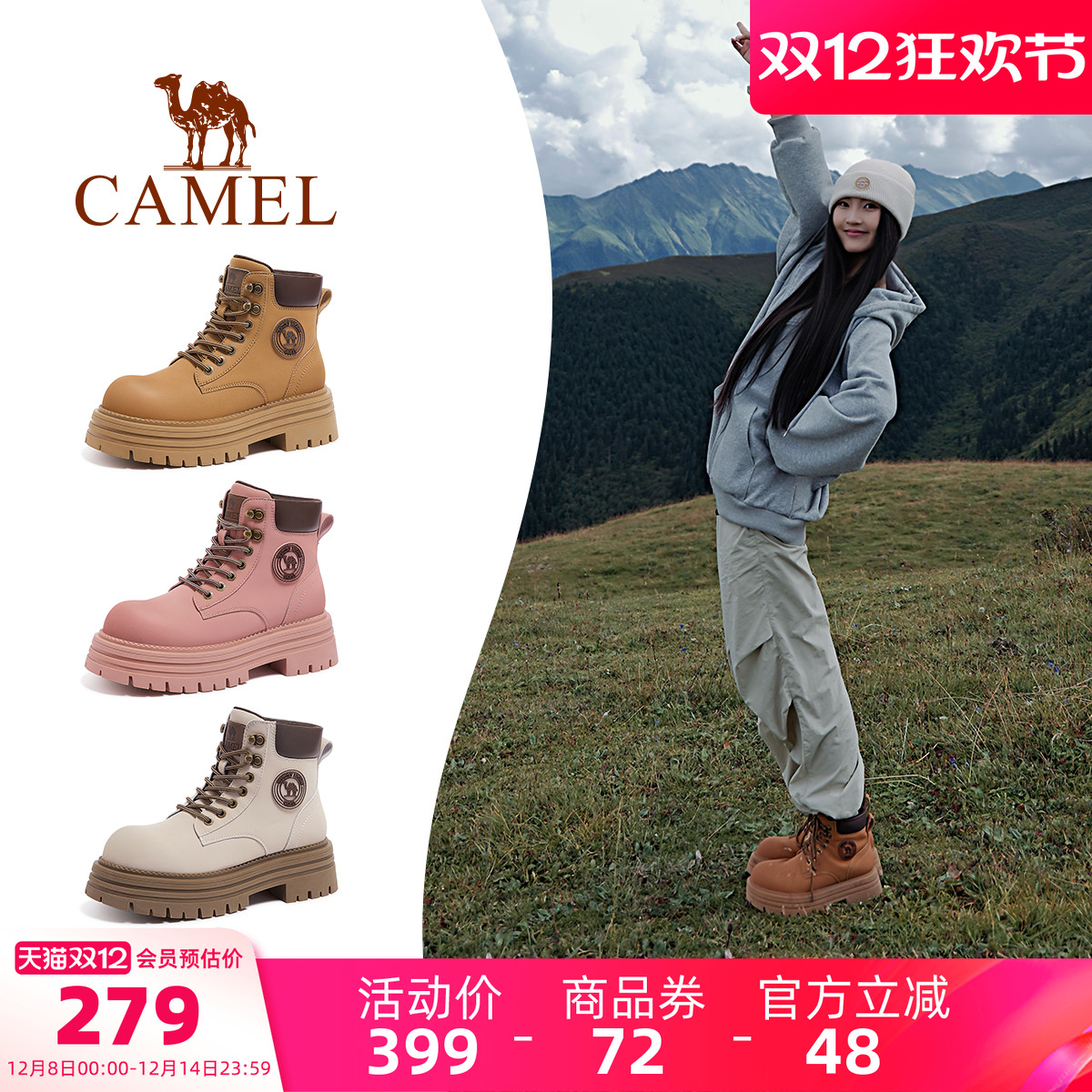 骆驼马丁靴女鞋2025秋季新款户外英伦大黄靴女款厚底短靴工装靴子