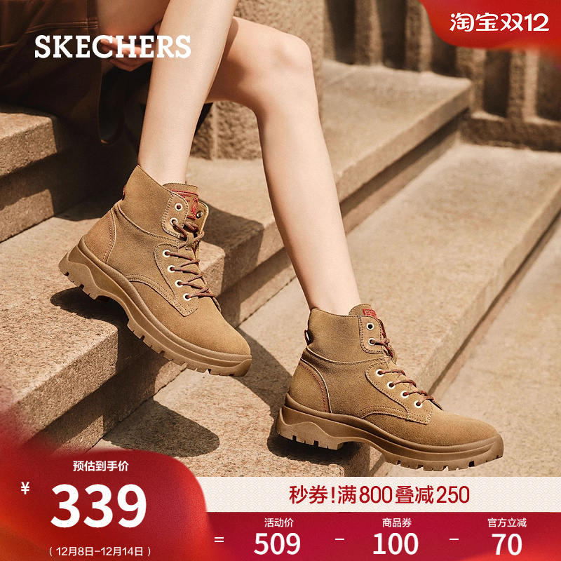 斯凯奇马丁靴废土风大黄靴秋冬女鞋厚底户外旅游靴中筒靴切尔西靴