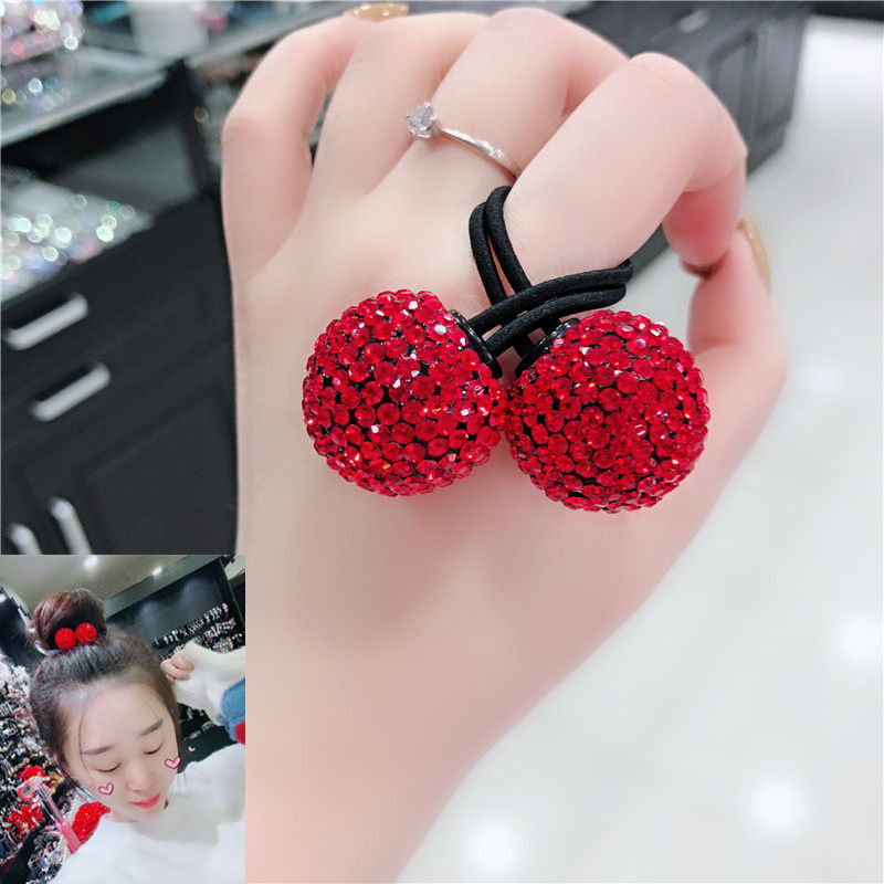 韩国红色发饰进口水钻闪亮钻球双球皮筋扎头绳成人头饰盘发饰品新