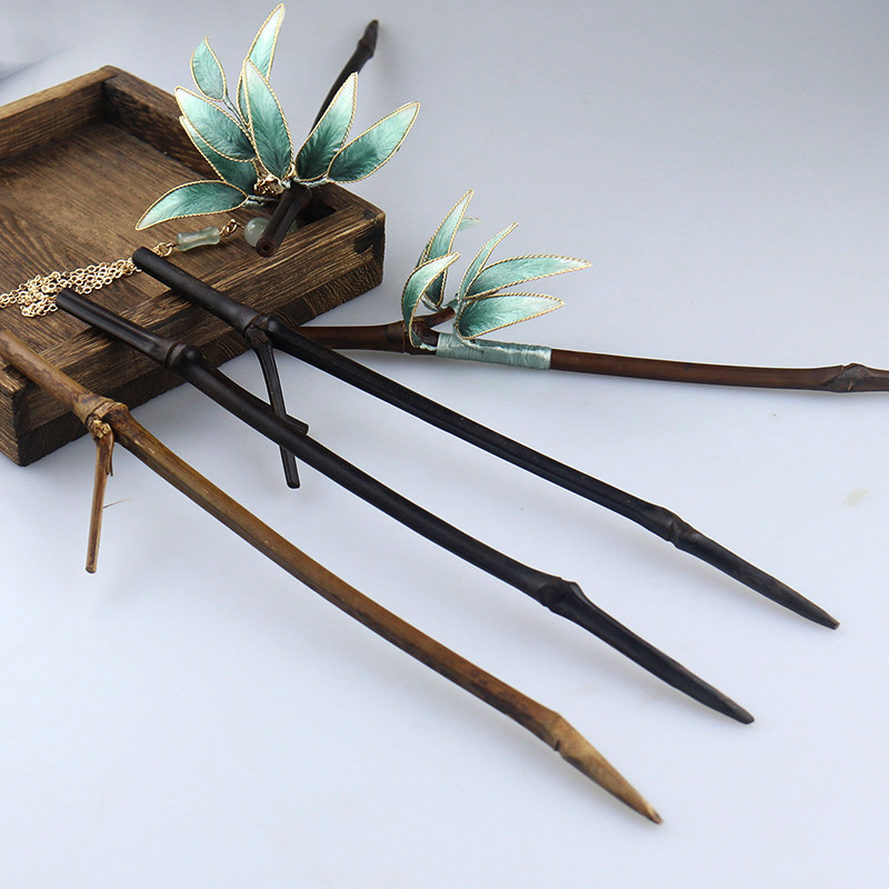 古风绒花天然竹子竹簪碳化竹枝条发簪手工缠花diy材料盘发饰品配