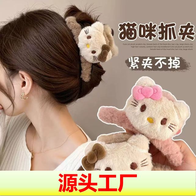 趣味可爱凯蒂猫毛绒抓夹双面kitty猫鲨鱼抓夹后脑勺盘发饰品新款