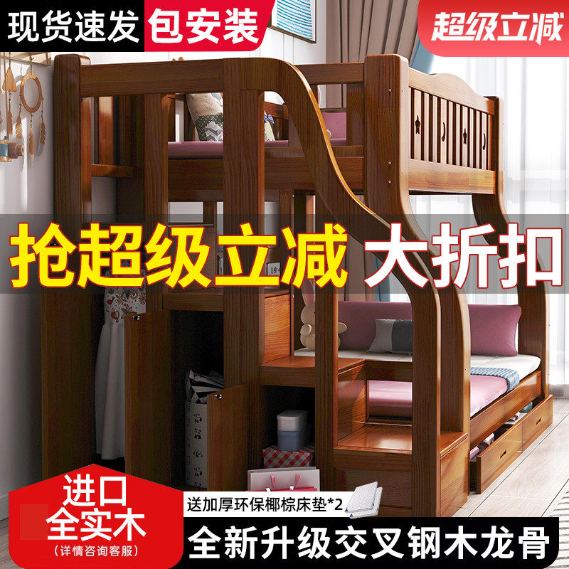 庭彬上下床实木儿童床高低床成人双层床子母床上下铺上下层实木床
