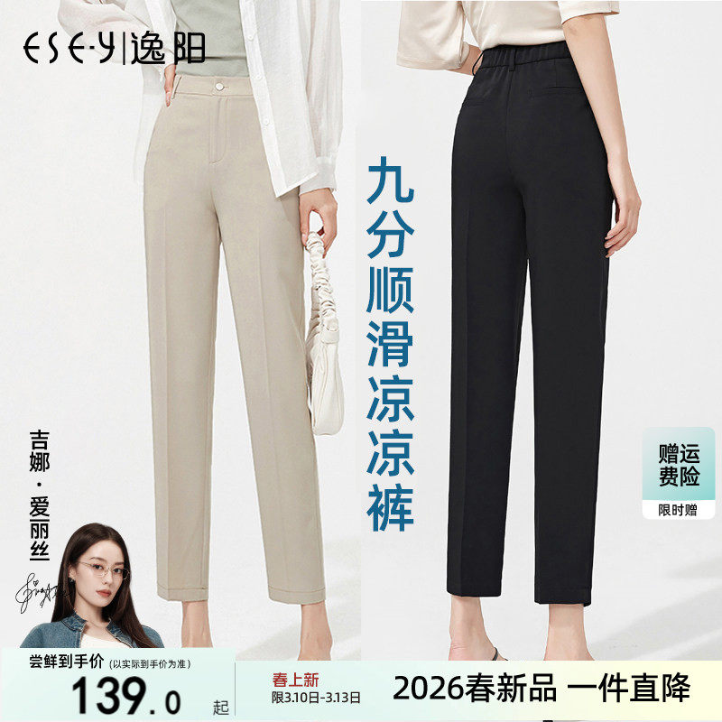 逸阳高腰冰凉九分西装裤女直筒垂感烟管夏新薄冰丝宽松显瘦哈伦裤