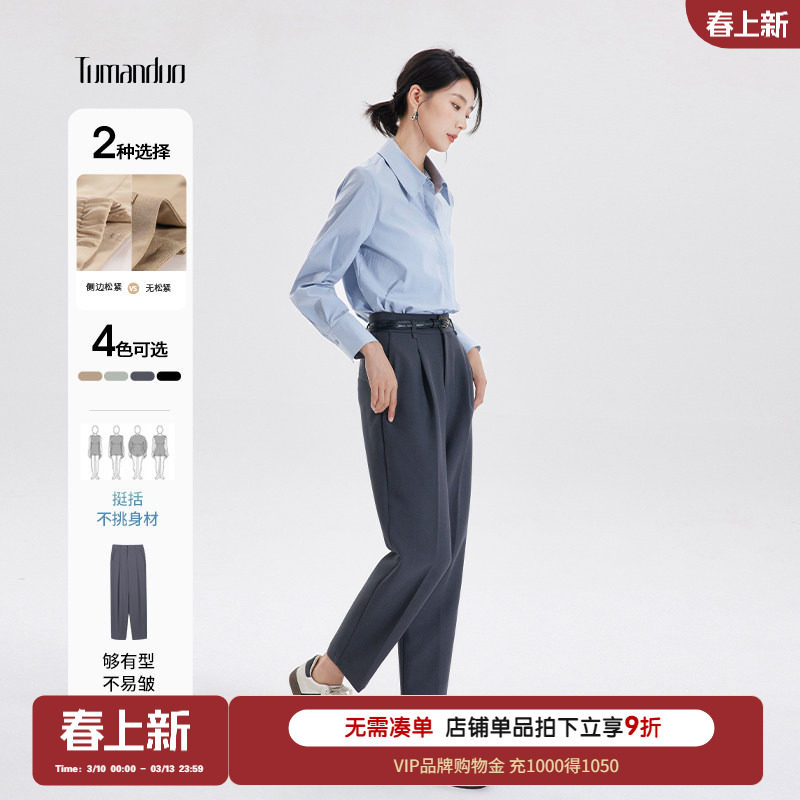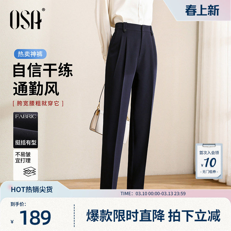 欧莎【热卖神裤】高腰OL职业烟管西装裤女春秋九分遮胯直筒休闲裤