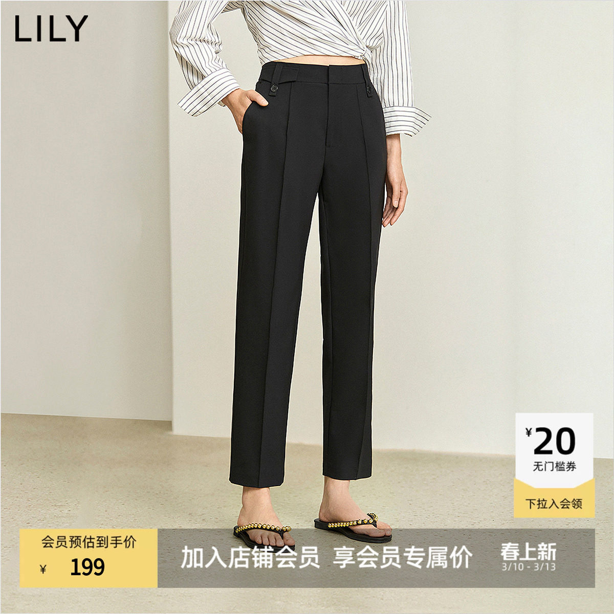 【通勤神裤】LILY25春夏新款高腰显瘦黑色九分烟管裤休闲西装裤女
