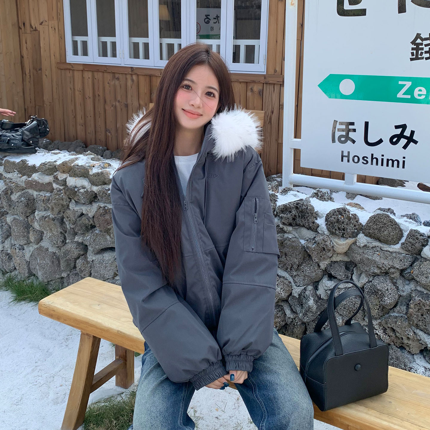 橘子树在哪儿韩系连帽毛领棉服外套女冬季保暖显瘦百搭工装派克服