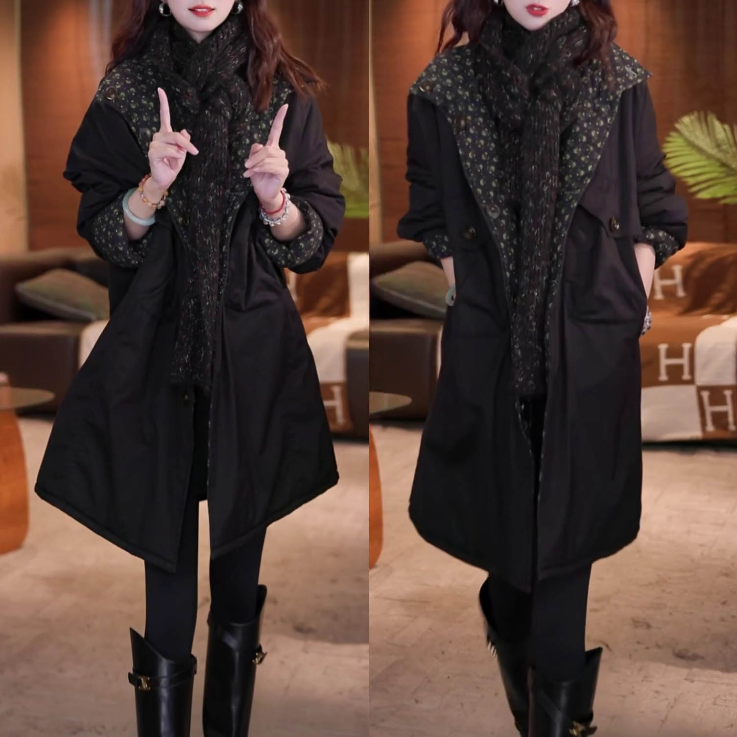 郭九九呢 温柔风软糯宽松长款棉服女冬季新款气质显瘦连衣裙外套