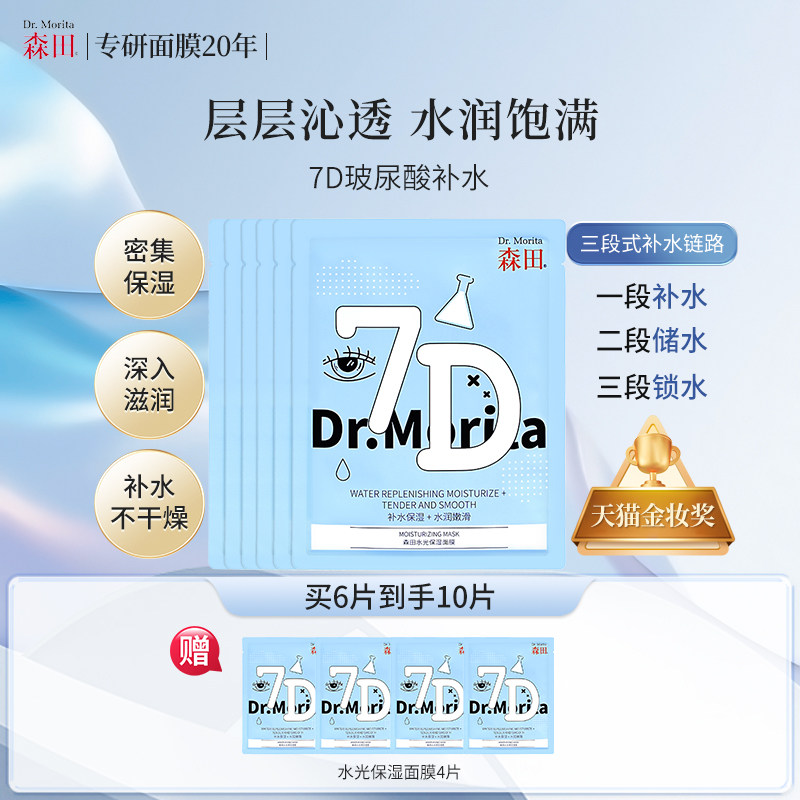森田水光保湿面膜7D重玻尿酸水润嫩滑补水面膜熬夜救急晒后男女士