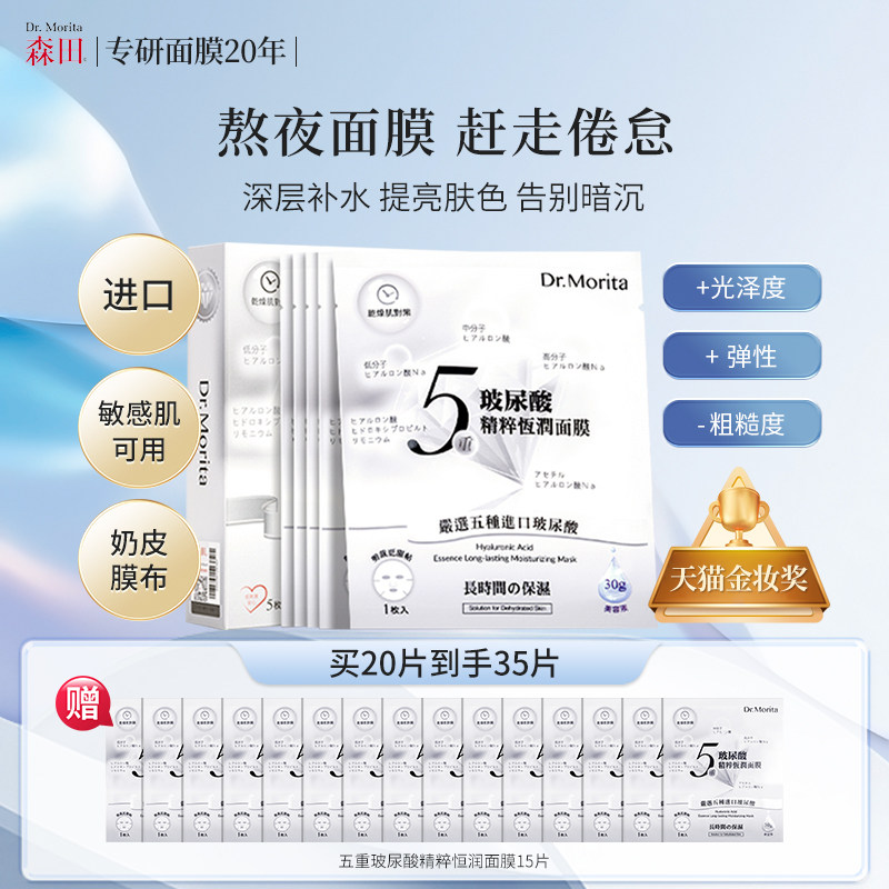 森田五重玻尿酸精粹恒润面膜深层补水烟酰胺熬夜急救奶皮免洗保湿