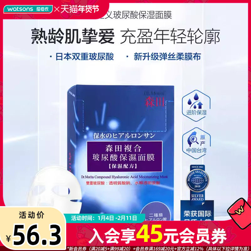 森田复合玻尿酸保湿面膜双抗紧致提拉组合抗皱淡纹熬夜补水烟酰胺