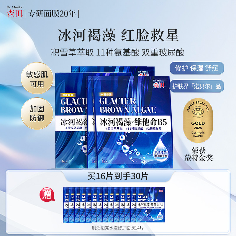 森田B5修护养颜面膜补水保湿改善干燥泛红敏感舒缓晒后熬夜急救