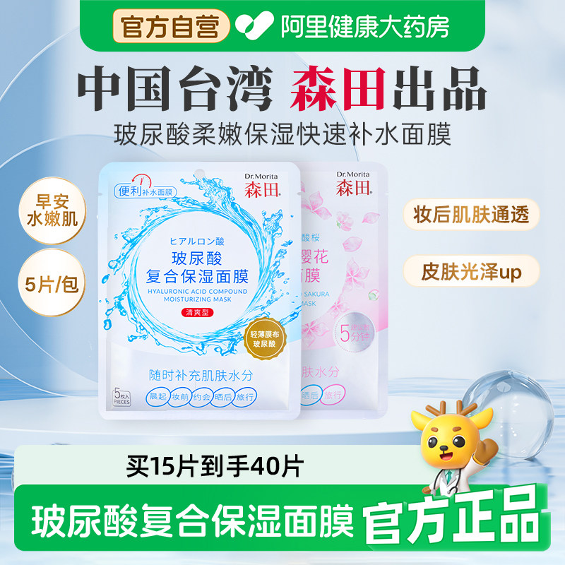 森田玻尿酸复合保湿面膜5片装补水保湿滋润修护便捷5分钟水嫩贴片