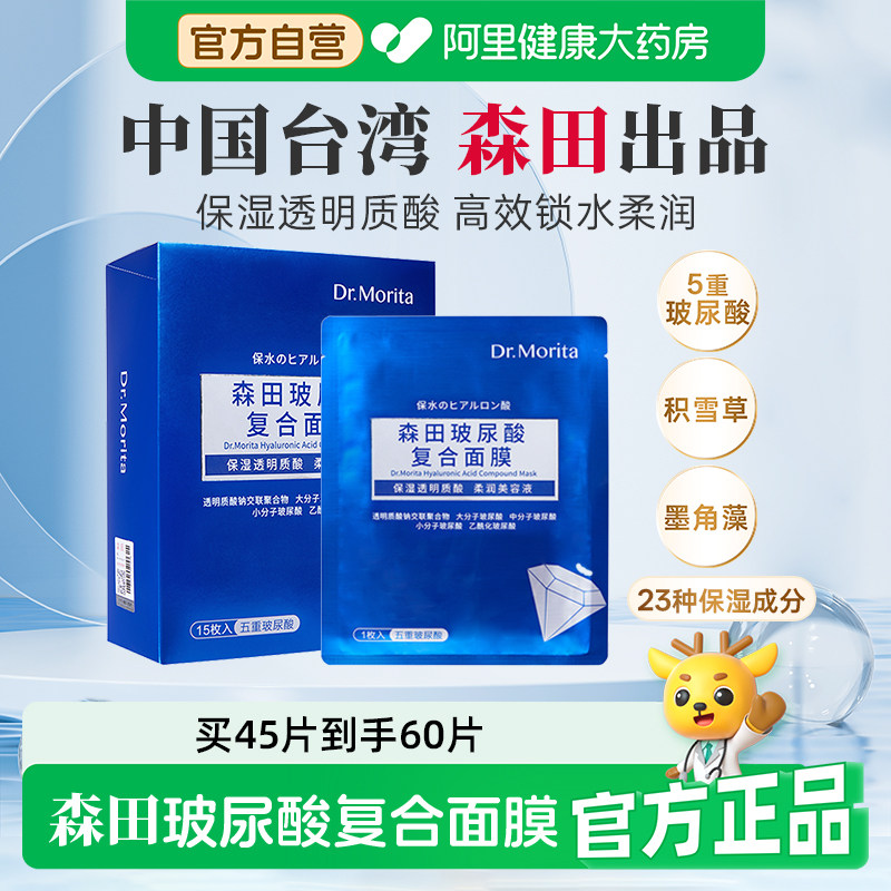 【超值补贴】森田玻尿酸复合面膜/海藻面膜补水保湿修护15片官方