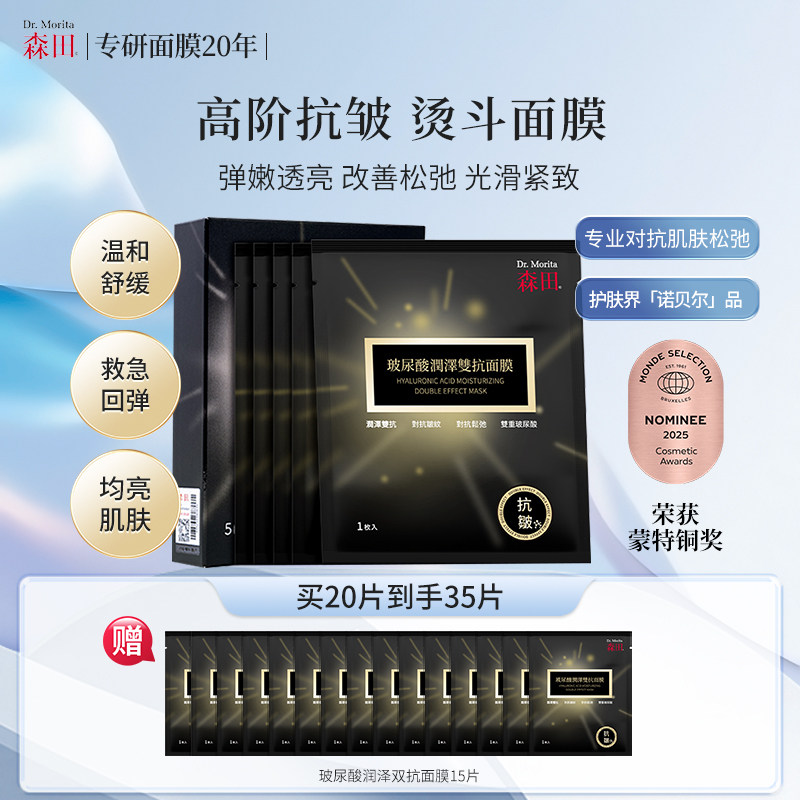 森田玻尿酸润泽双抗面膜抗皱紧致舒缓补水保纹提拉滋润温和无刺激