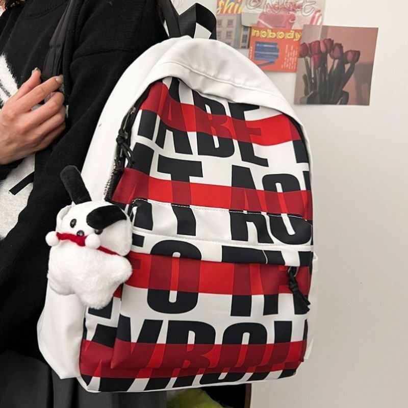 美式高街书包2025新款后背包女生学生小众印花背包潮流男女双肩包
