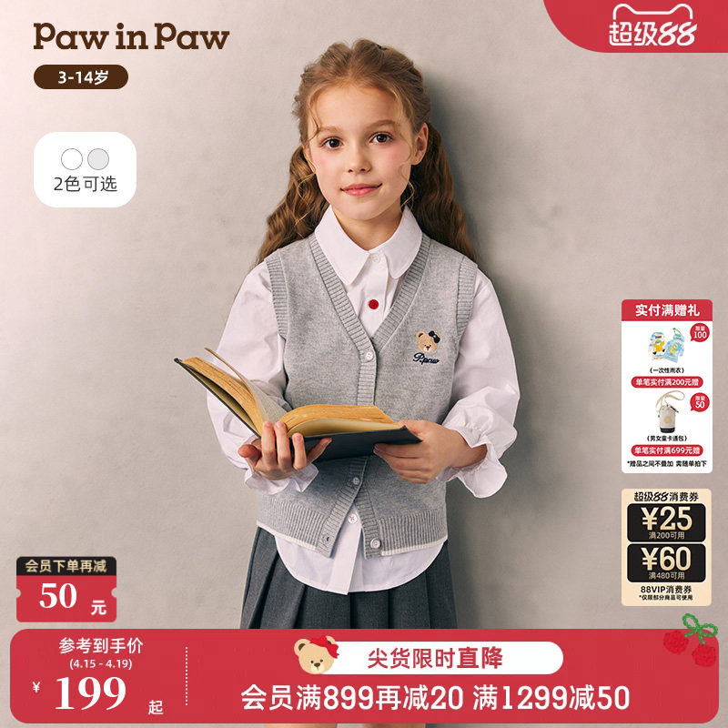 【抗静电】PawinPaw卡通小熊童装26年春夏新款女童针织马甲毛衣