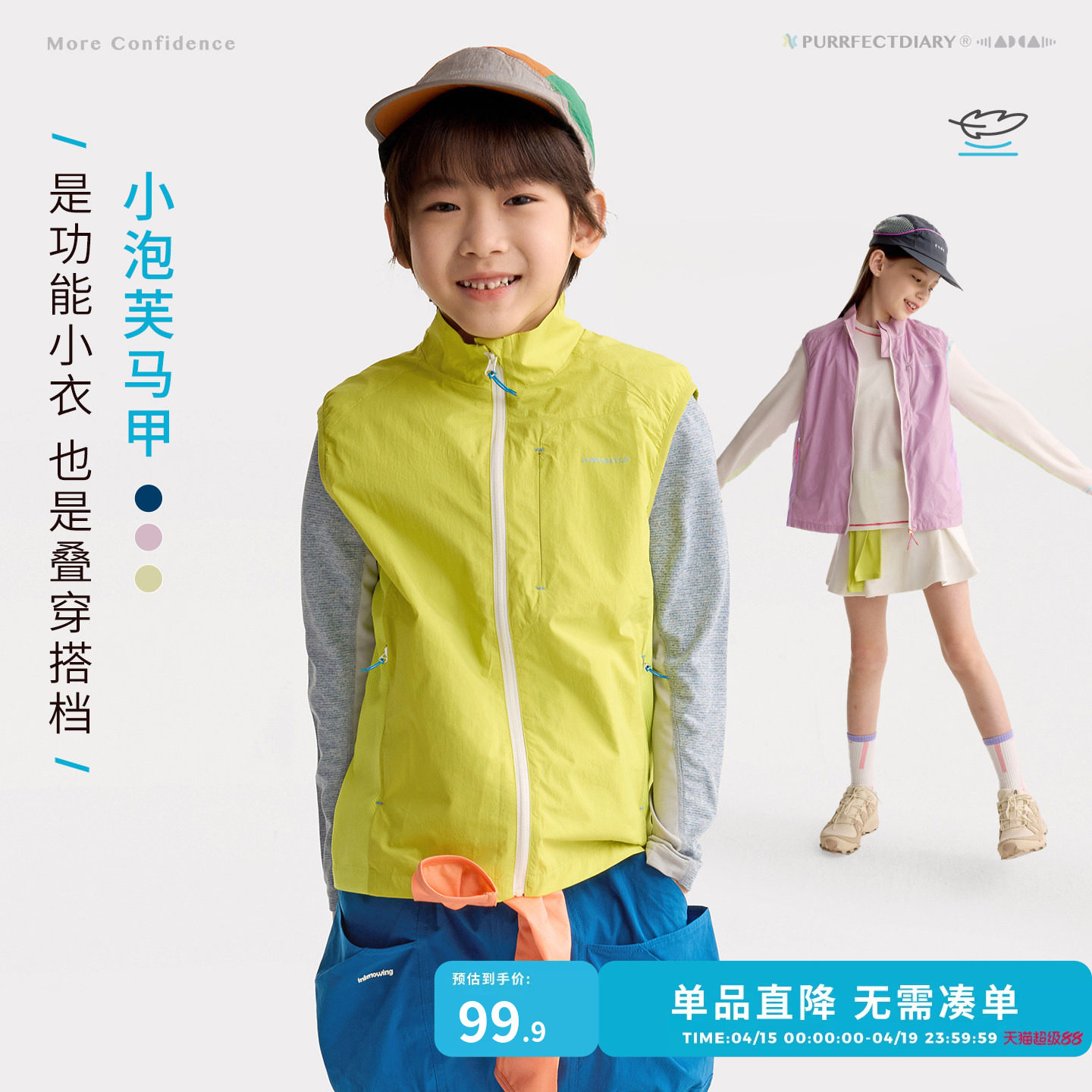 【无氟时尚马甲】棉叔叔女童2026新款立领轻量马甲男童春夏户外