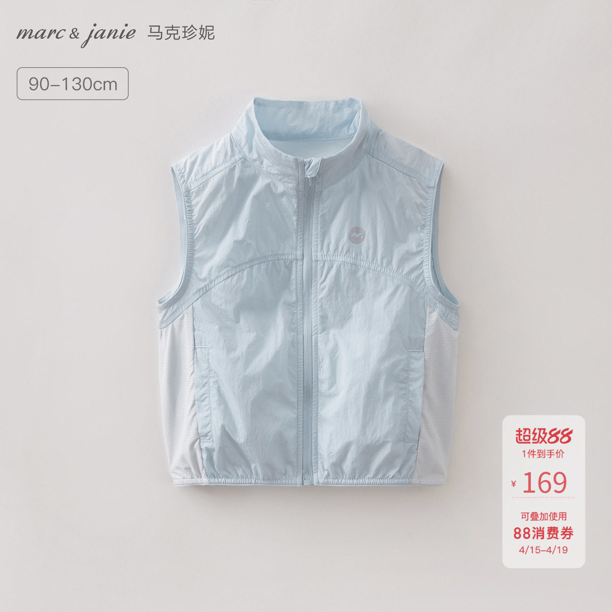 马克珍妮轻盈透气男女童运动马甲宝宝背心夹克2026夏装新款560309