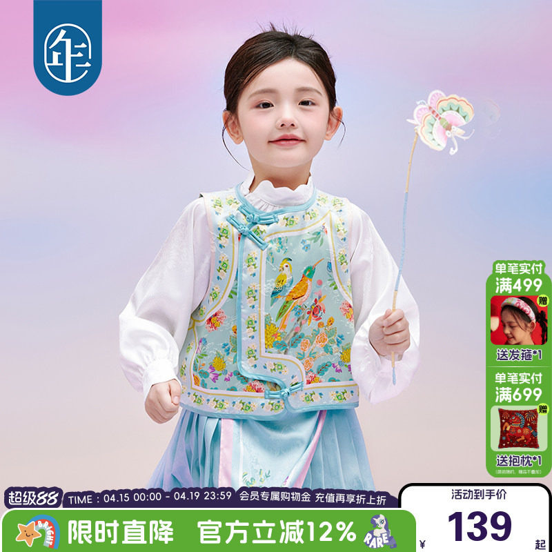 年衣童装女童春装马甲新款女孩新中式国风儿童裙子汉服唐装马面裙