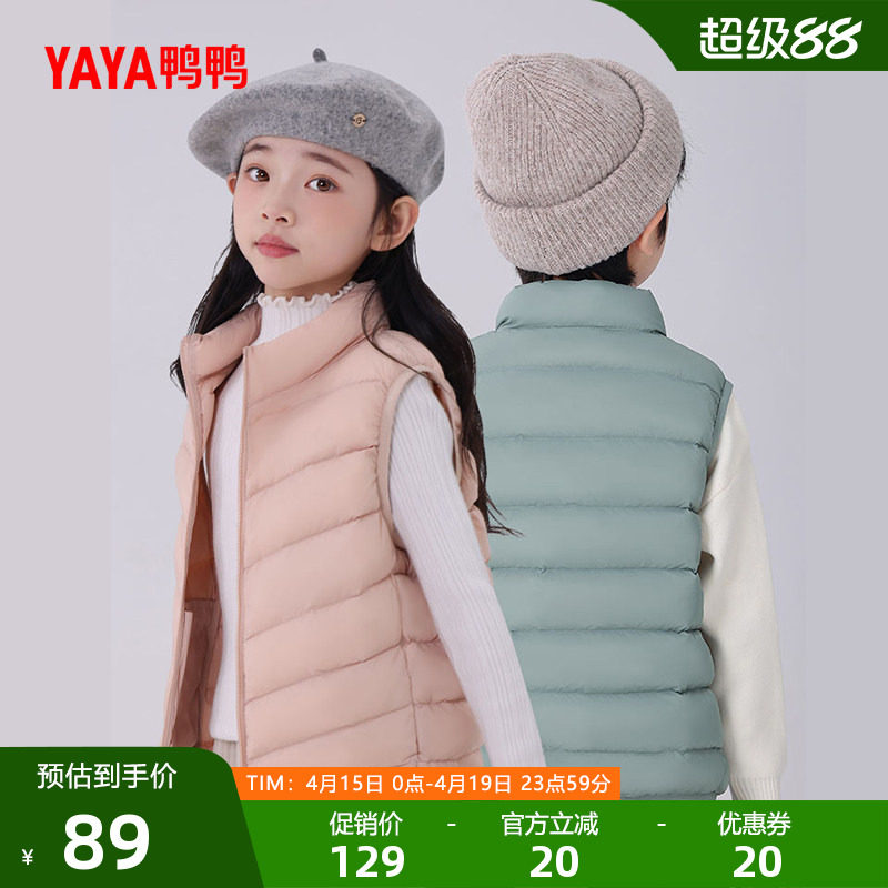 鸭鸭儿童羽绒马甲2025年秋冬新品中大童短款立领加厚保暖男女童Y
