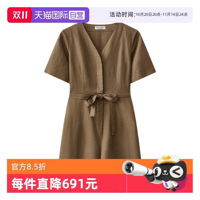 【自营】Marc O'Polo2025夏季新款时尚V领短袖天然亚麻连体短裤女