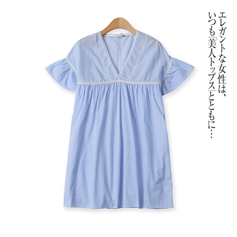 条纹短裤夏新款外贸女装清新百搭V领镂空钩花显瘦短袖连体裤11207