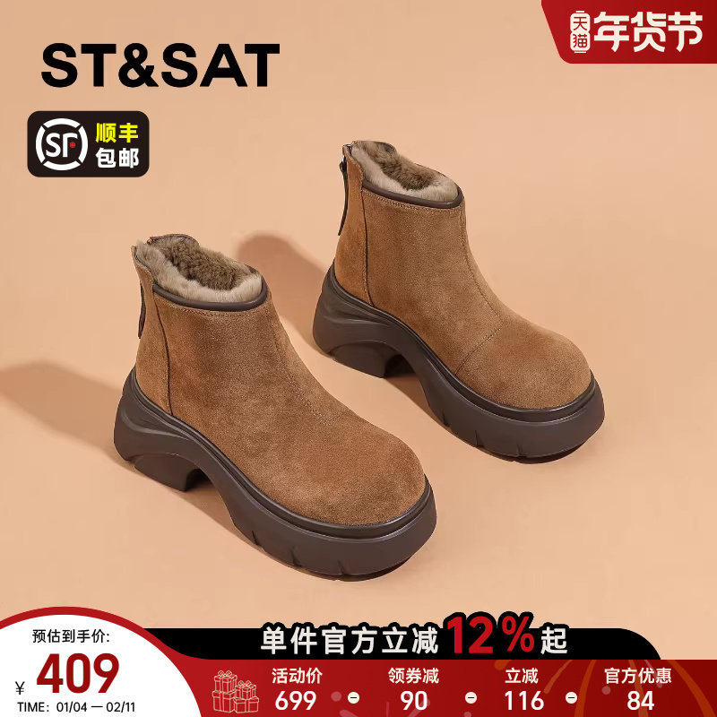 星期六英伦风加绒马丁靴女款2025新款秋冬厚底超火小短靴高跟女靴