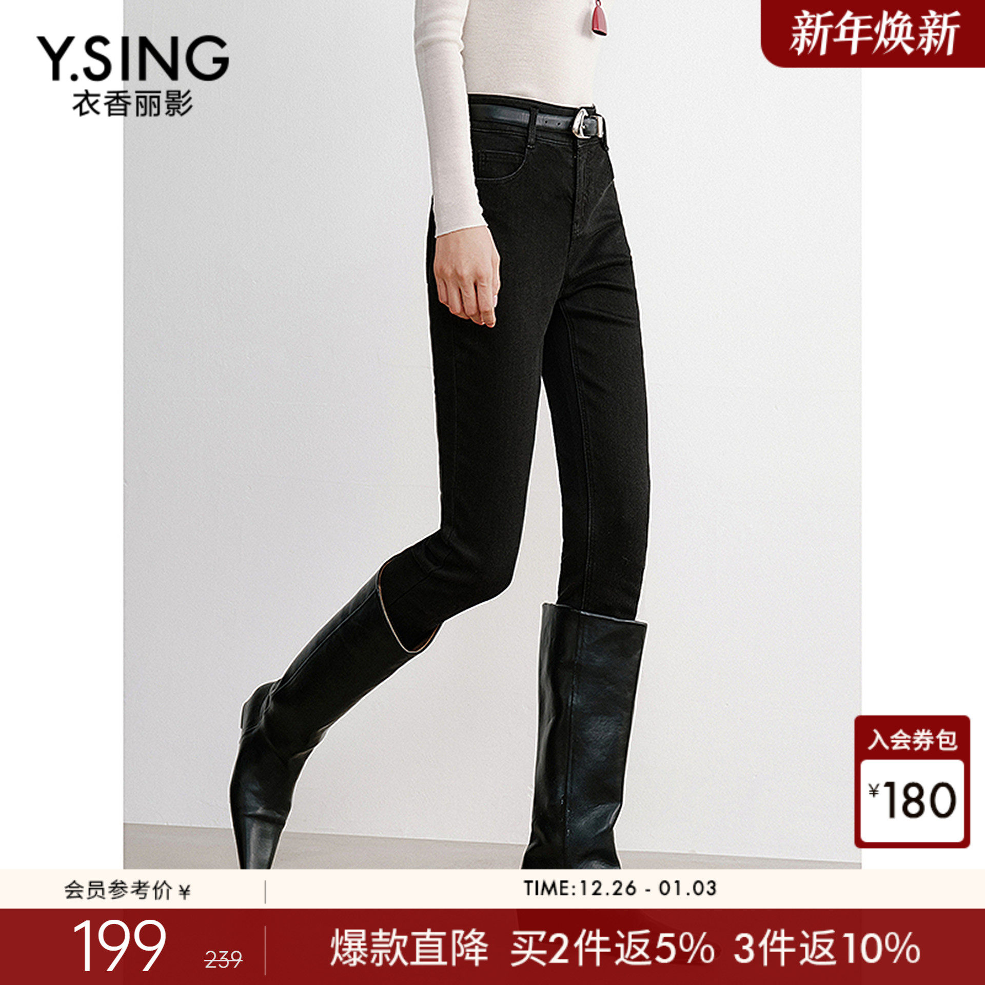 衣香丽影黑色加绒小脚牛仔裤女2025冬装新款高腰修身铅笔裤长裤子