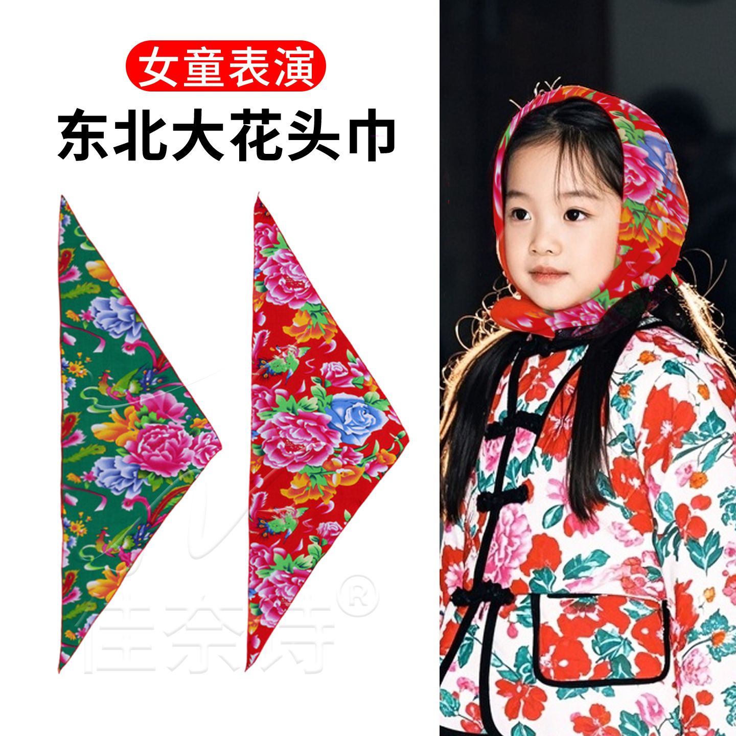 头巾女农村东北大花布发带宝宝围巾表演配饰幼儿园演出头饰三角巾