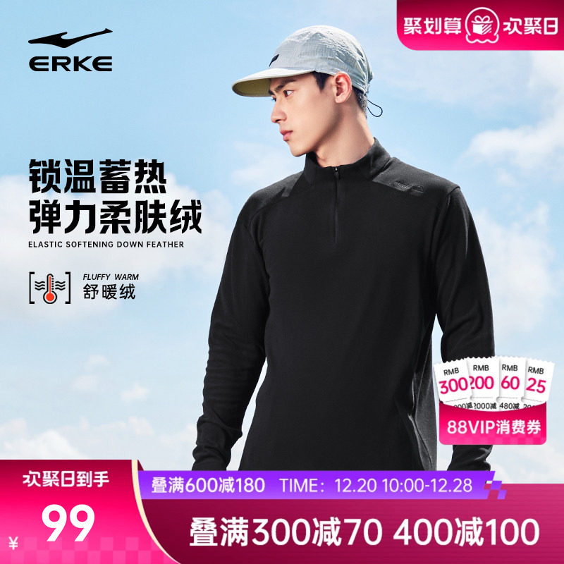 鸿星尔克半拉链加绒卫衣男2025冬季新款男士运动长袖t恤加厚上衣