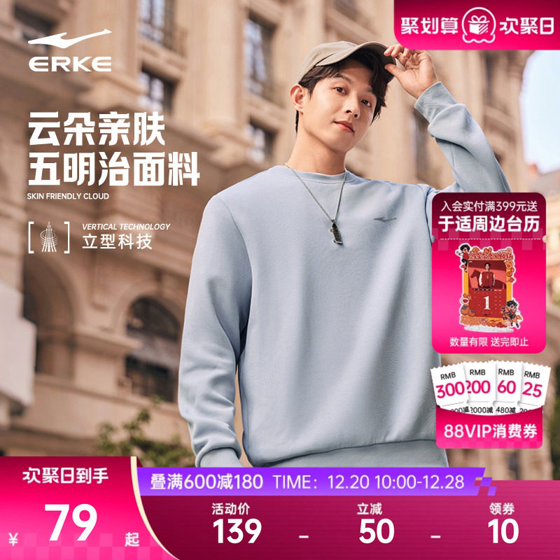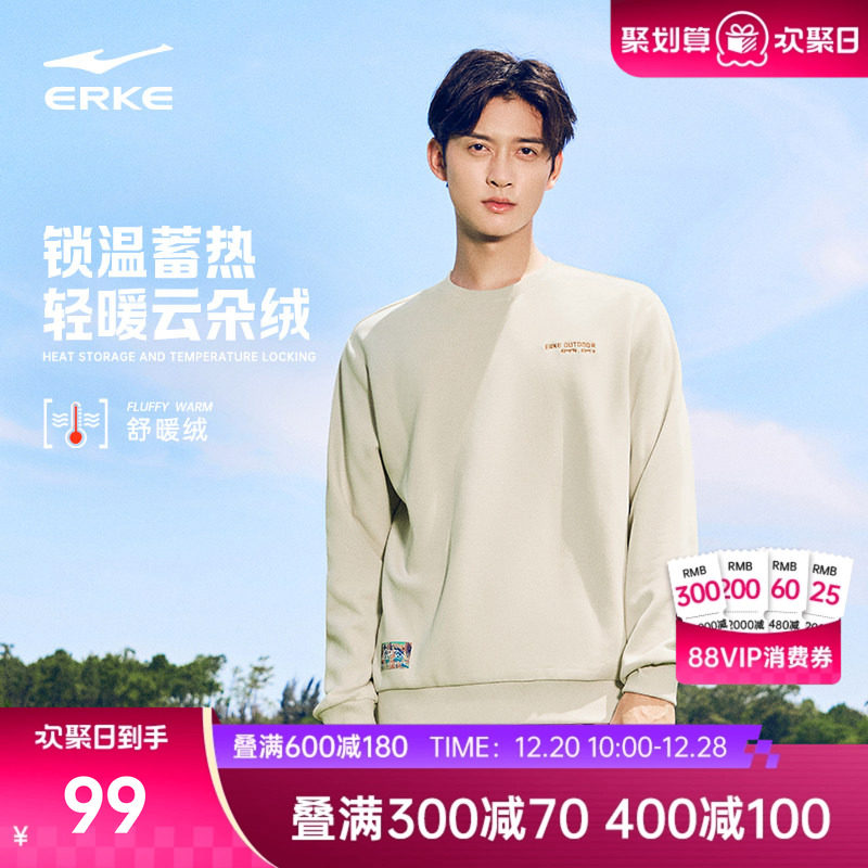 鸿星尔克加绒卫衣男冬季新款男士男生青少年加厚运动圆领长袖上衣