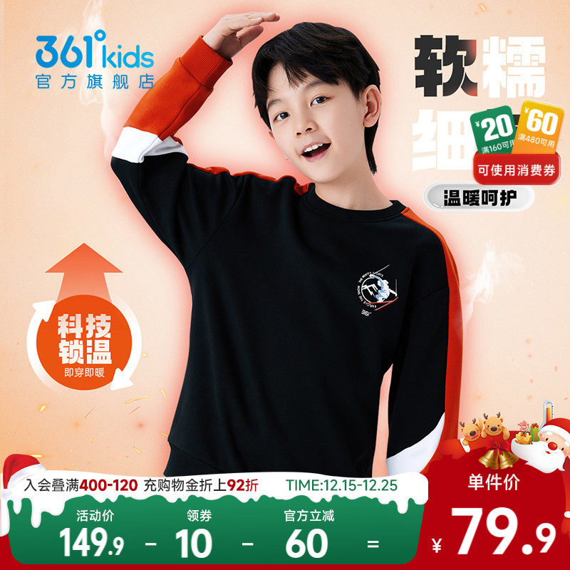 暖姜卫衣|361童装男童加厚套头卫衣2025冬季新款拼接运动休闲上衣