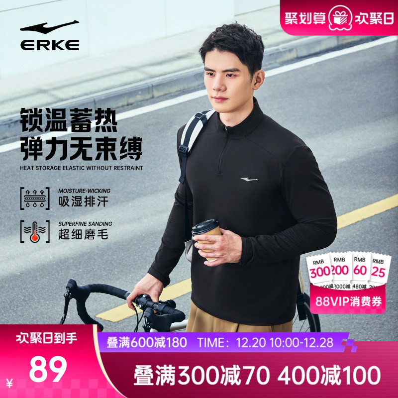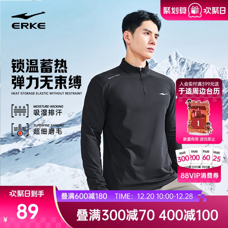 鸿星尔克半拉链长袖t恤男款冬季男士跑步速干衣运动加厚上衣卫衣