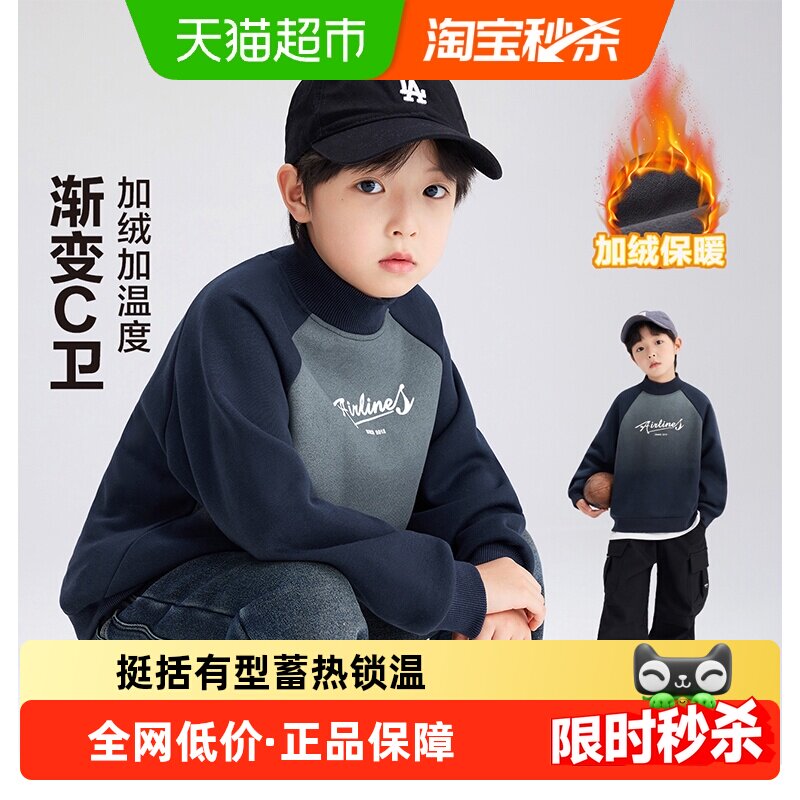 左西童装男童加绒卫衣冬季儿童加厚上衣秋冬2025新款男孩洋气冬装