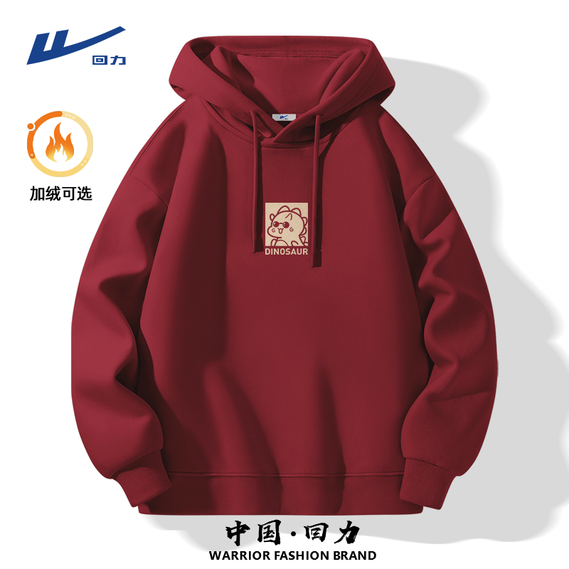 回力卫衣男秋冬2026新款马年本命年酒红色男生加绒加厚连帽衣服Y