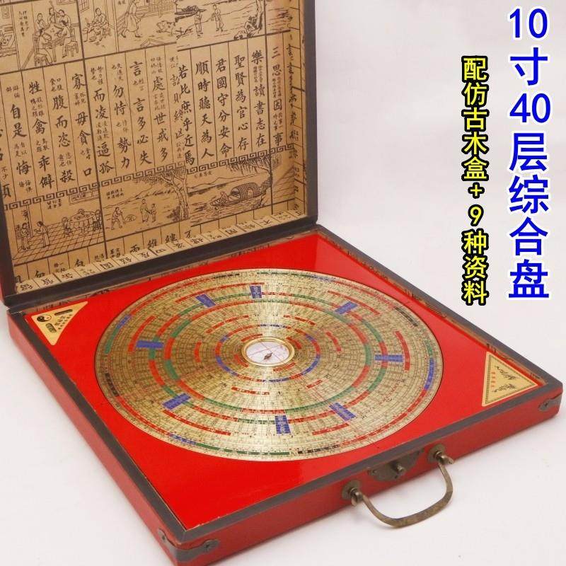 懿福堂彩面10寸40层三元三合综合罗盘高精度纯铜专业风水罗盘铝箱