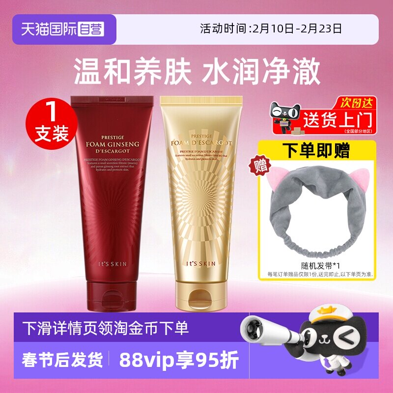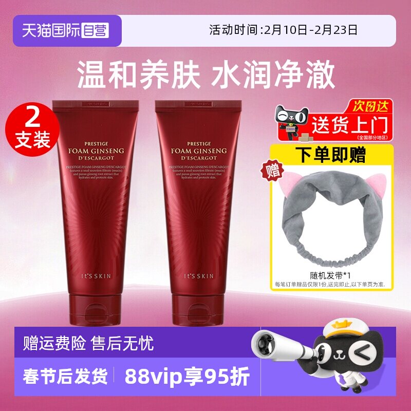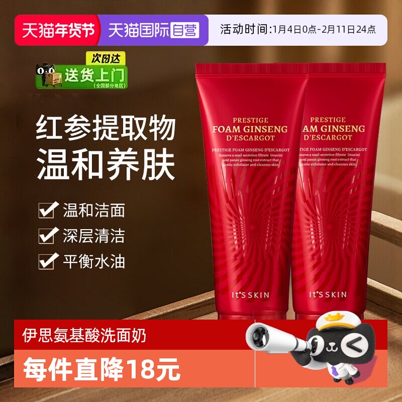 【自营】it's skin伊思红参蜗牛洗面奶150ml温和清洁保湿洁面2支